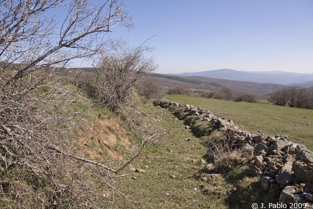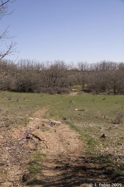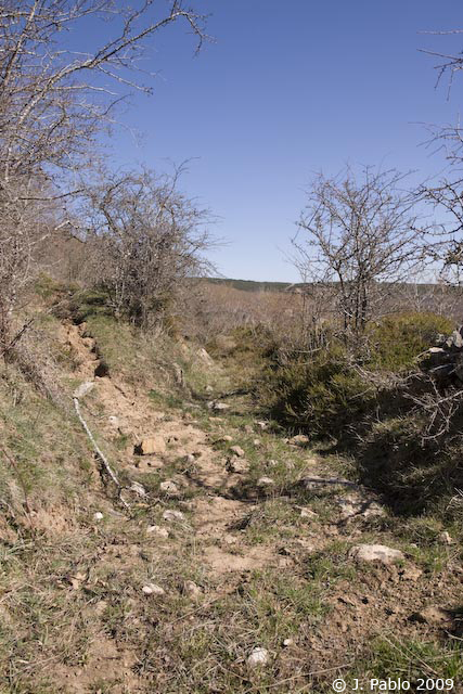 Al finalizar el terreno de Candenosa, el camino se convierte en cortafuegos. La senda a Quintanas de Hormiguera es más difícil de seguir, pero siguiendo el cortafuegos encontraremos el camino a Villanueva de Henares.