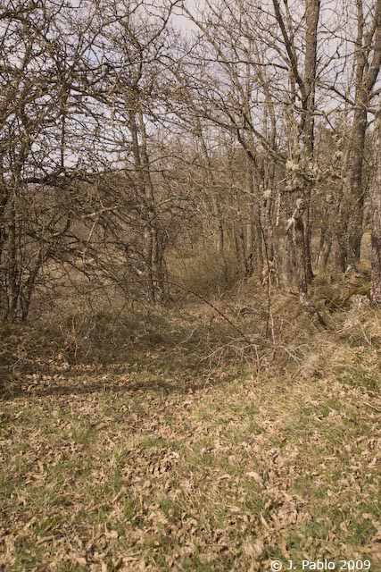 Entre los árboles el camino original, por la derecha la senda actual.
